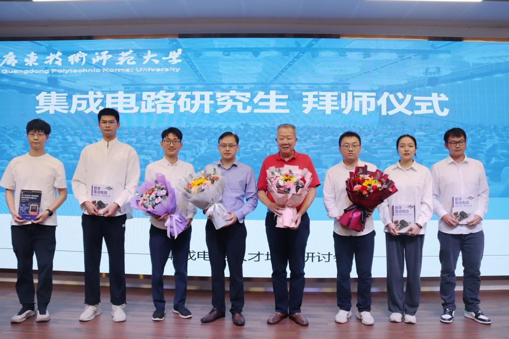 随后,会议进行集成电路研究生拜师仪式。拜师仪式是本次研讨会的重要环节之一,电子与信息学院2024级集成电路工程专业的7位研究生代表为校内导师和校外行业专家导师献上了鲜花,表达了对导师辛勤培育的由衷感谢。校内外导师则以赠书的形式回馈学生,以书为媒、以知传道,既饱含学术深意,也寄托了对学生未来成长的殷切期望。