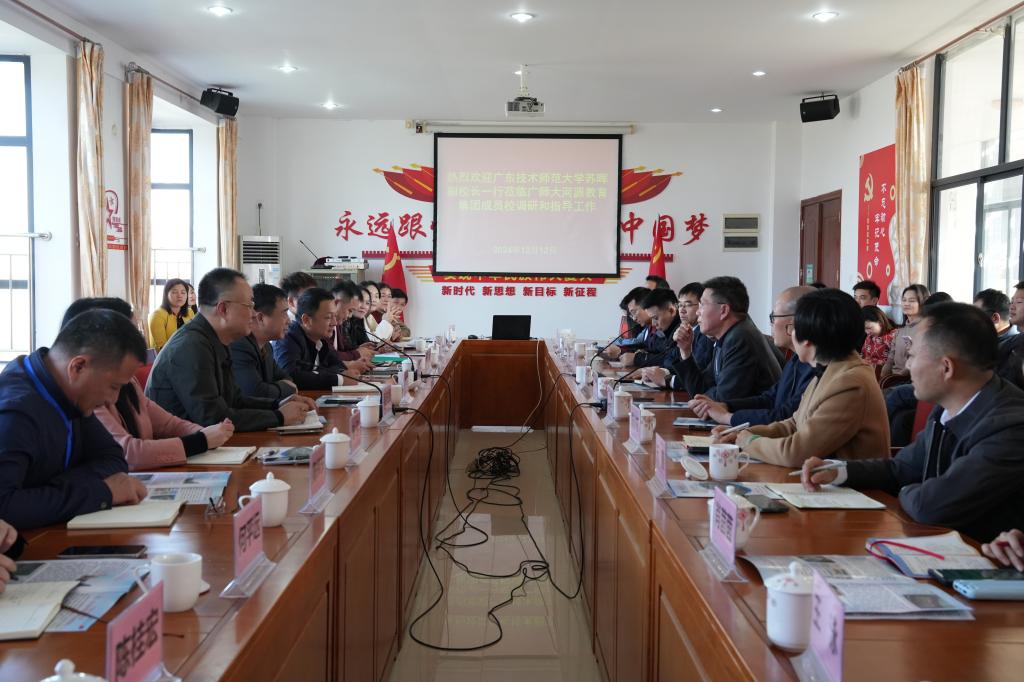 为进一步贯彻落实省委“1310”具体部署及“双百行动”工作要求,凝聚教育科技人才发展合力,推动教育资源整合与提升,12月12日,学校副校长苏晖率河源校区管委会、校团委、网络空间安全学院负责人前往广师大河源高新区实验学校开展教育集团办学情况调研与指导工作。河源市教育局党组成员、主任督学曾民卫,源城区教育局局长陈勇辉,广师大河源教育集团总校长吴佑宽等陪同调研。