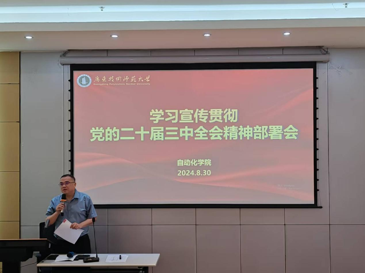 8月30日上午,自动化学院在东校区一教209召开全体教职员工大会,并专题学习宣传贯彻党的二十届三中全会精神。