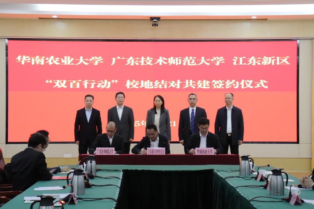 为深入贯彻落实省委“1310”具体部署及“双百行动”工作要求,进一步推动“双百行动”合作共建项目落地见效,1月21日下午,受学校党委书记王兵,党委副书记、校长戴青云委托,学校副校长苏晖率队赴河源市江东新区参加河源市江东新区与买球App软件手机在线下载、华南农业大学三方开展的“双百行动”柔性结对校地共建签约仪式。河源市副市长谢春艳,江东新区管委会主任杨志,河源市教育局局长杨利华,华南农业大学副校长陈乐天,以及河源校区管委会等三方相关部门主要负责人出席仪式。
