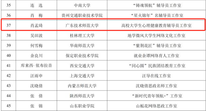 近日,教育部办公厅公布《2024年度高校思想政治工作质量提升综合改革与精品建设项目入选名单》,经组织推荐、资格审核、专家遴选、网络公示,买球官网“高校大学生心理健康教育辅导员工作室”作为全国80个项目之一入选了2024年度高校辅导员名师工作室。