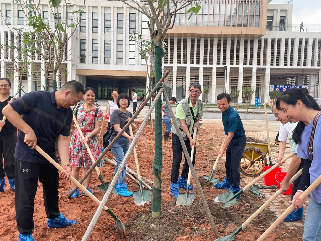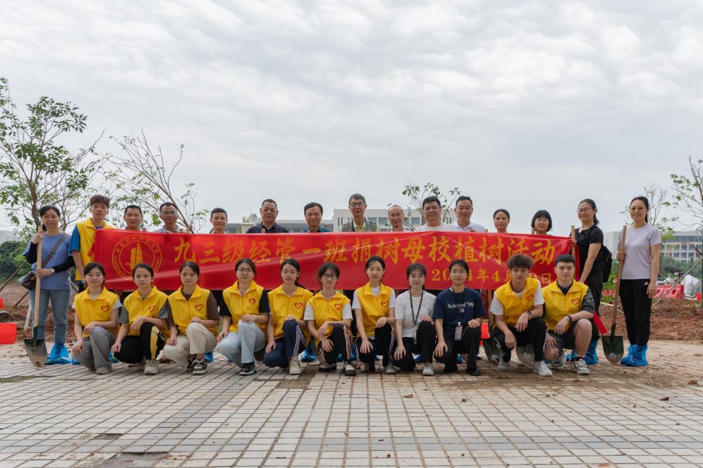 据悉,为表达对母校的感恩之情,93级经管一班为校友广场捐赠50棵紫花风铃木,建设紫花风铃园(分布在白云校区东湖和西湖亲水平台侧边),本次种植的是首批16棵。
