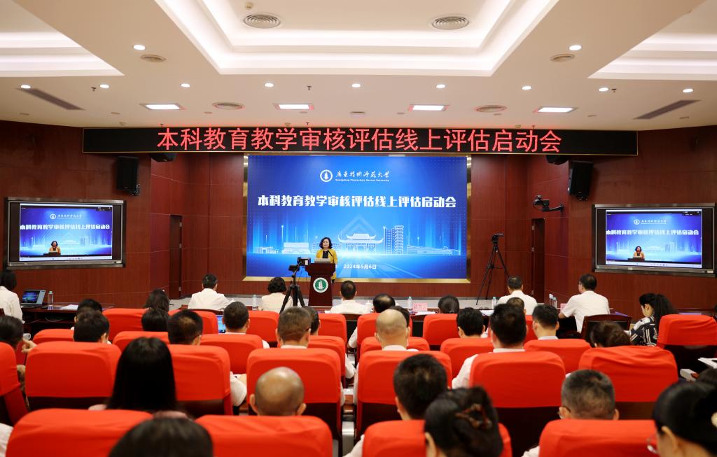 5月6日上午,买球官网召开本科教育教学审核评估线上评估启动会。会议以线上线下相结合的形式召开。审核评估专家组全体成员,广东省教育厅高等教育处处长姜琳及相关同志,全体校领导出席会议。全体中层正职,各教学单位领导班子成员,教务处、教育质量监控与评估中心全体人员,各专项工作组组长、副组长,全体联络员参加会议。会议由副校长许玲主持。