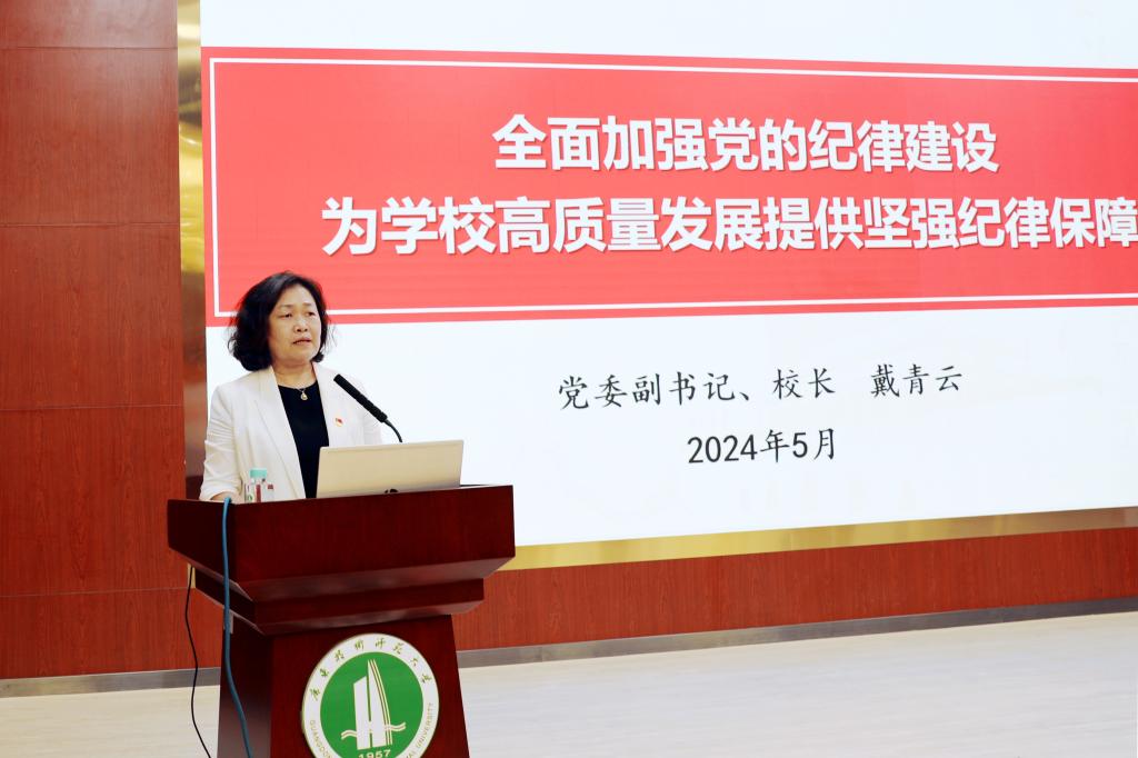 在讲授党课环节,戴青云以《加强党的纪律建设,推进中国式现代化的广师大实践》为题,结合学校具体工作,深刻阐述了党纪学习教育的重大意义、基本目标、具体要求和方式方法,确保学校高标准高质量开展各项工作以推动党纪学习教育取得实质性成效。戴青云强调,在全党开展党纪学习教育,是以习近平同志为核心的党中央加强党的纪律建设、推动全面从严治党向纵深发展的重要举措,党员领导干部要做到以下三点。一是要全面认识开展党纪学习教育的背景意义。当前,我国正处于中华民族伟大复兴战略全局和世界百年未有之大变局“两个大局”历史交汇点,各种思想文化相互激荡,国际金融市场波动加剧,动荡源和风险点增多,外部环境的不稳定性、不确定性上升。能否应对好这一大变局,关键要看我们是否有识变之智、应变之方、求变之勇。教育、科技、人才是全面建设社会主义现代化国家的基础性、战略性支撑,教育要为科技自立自强提供人才支撑。买球官网要深入学习领会习近平总书记关于发展新质生产力的重要论述精神,扎实做好教育教学、科技创新、人才培养工作。同时,在科技创新支撑产业化发展的过程中,进一步有组织地协调教学和科研等要素互补、资源共享,形成大平台、大团队、大项目、大成果的良性循环,为广东省“百千万工程”和绿美广东做出广师大贡献。二是要准确把握党纪学习教育的目标要求,教育引导党员、干部学纪、知纪、明纪、守纪。新时代以来,以习近平同志为核心的党中央把党的纪律建设纳入党的建设总体布局,以严明的纪律管全党治全党,不断完善党的纪律体系,持续强化纪律刚性执行,有力推动全面从严治党不断向纵深发展。要进一步深化对加强党的纪律建设重要性和忽视党纪、违反党纪问题危害性的认识,紧扣党的政治纪律、组织纪律、廉洁纪律、群众纪律、工作纪律、生活纪律进行研讨,不断强化纪律意识,做到心有所畏、言有所戒、行有所止,真正使学习党纪的过程成为增强纪律意识、提高党性修养的过程。三是要以党纪学习教育为契机,精心组织、狠抓落实,教育引导广大党员干部把遵规守纪刻印在心,内化为日用而不觉的言行准则,进一步提高政治判断力、政治领悟力、政治执行力,始终做到忠诚干净担当,为学校开展各项工作提供坚强保障。党员干部要贯彻落实省委“1310”具体部署,做好学校博士点建设和本科审核评估工作,为扎实推进中国式现代化的广东实践做出积极贡献。