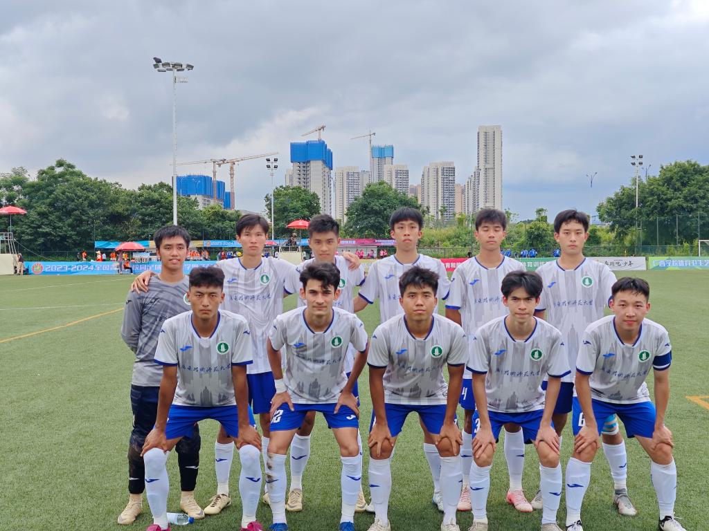 6月7日,2023-2024全国青少年校园足球联赛大学男子校园组全国总决赛在广西梧州体育训练基地正式开赛。广师大男子足球队代表广东省出战,与同济大学、西南交通大学、湖南工学院同在E组,展开激烈角逐。截至目前,广师大男子足球队以四战全胜的战绩挺进全国八强。