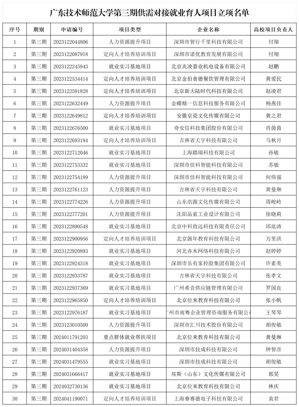 6月14日,教育部高校学生司(高校毕业生就业服务司)发布《关于公布教育部第三期供需对接就业育人项目立项名单的通知》,买球官网30项供需对接就业育人项目获批立项。