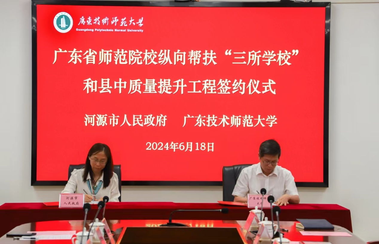 6月18日,买球App软件手机在线下载与河源市政府在学校河源校区签订了《广东省师范院校纵向帮扶欠发达地区“三所院校”和县中质量提升工程》纵向帮扶合作框架协议。广东省关工委副主任王玉学,河源市副市长谢春艳,学校校长戴青云,副校长苏晖参加签约仪式,并举行了座谈会。河源市教育局局长杨利华主持签约仪式。