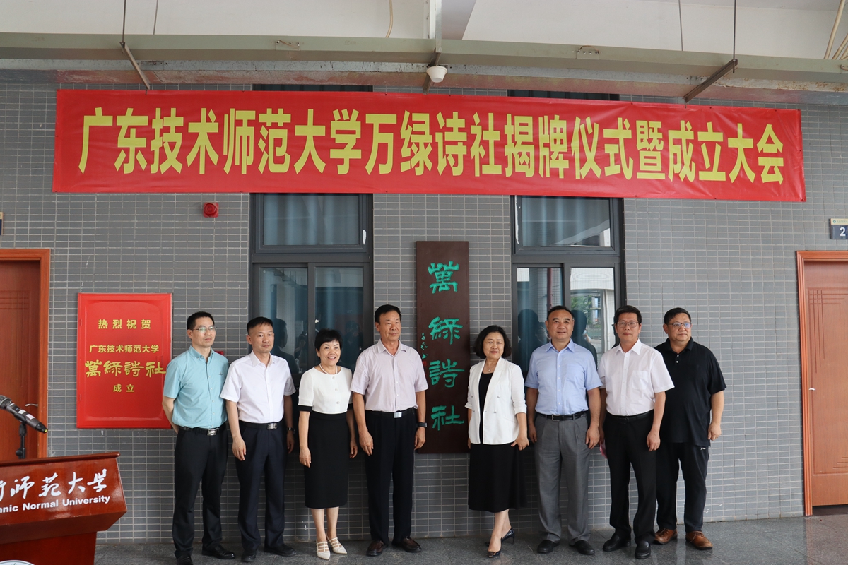 郭杰介绍了万绿诗社的成立背景、意义及发展愿景,文学与传媒学院副教授、万绿诗社指导老师祁丽岩饱含深情地朗诵了郭杰当天发表于河源日报的诗词新作《万绿湖之歌》,并现场献诗《贺买球App软件手机在线下载万绿诗社成立》。在诗歌余韵中,在全场师生的见证下,王玉学、李君副、曾丽霞、王文巧、戴青云、郭杰、苏晖、林卓上台为万绿诗社揭牌,正式宣告买球App软件手机在线下载万绿诗社的成立。