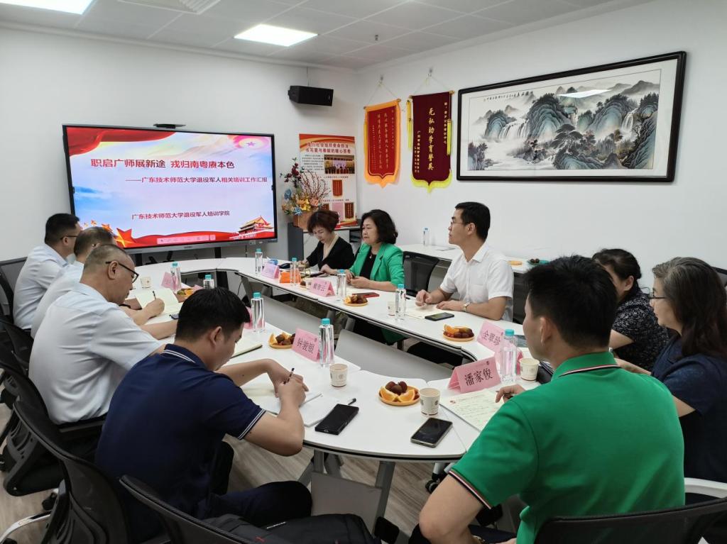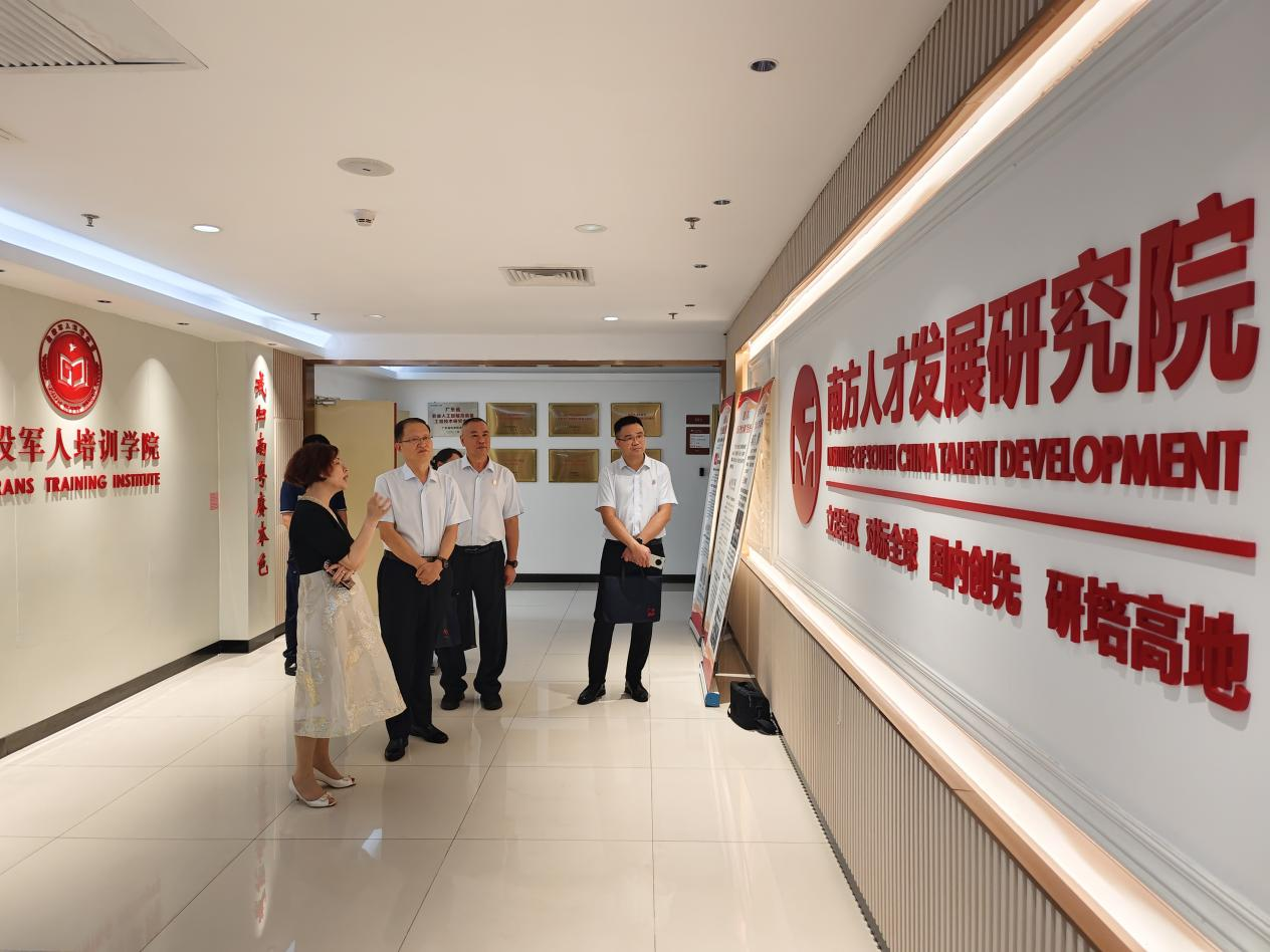 6月20日,广东省国防教育学会副会长兼秘书长王光军率队到买球官网退役军人培训学院调研,省国防教育学会监事长郑鹏生、教研部长卢旭升、教研部干事钟骏银,学校校长戴青云,校办主任徐光伟、武装部部长全翠珍、退役军人学院负责人,广东省南方人才发展研究院院长赵玲玲、广东省南方人才发展研究院人工智能与大数据专委会主任郑雪吟、广东省退役军人创业发展促进会(品牌研究会)秘书长潘家俊等领导专家参加了本次调研活动。