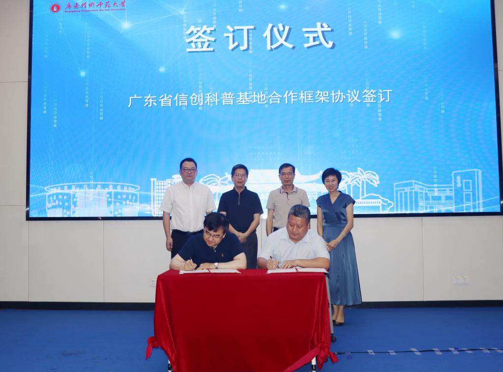 会议举行了广东省科普教育基地揭牌仪式、基地合作框架协议签订仪式、广东省信创科普平台发布仪式。网络空间安全学院院长蔡君详细介绍了广东省信创科普平台,并希望通过此平台持续开展相关活动,推动全民科普教育,全面助力科技自立自强。