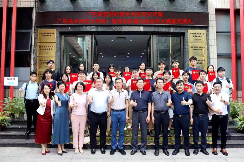 大会现场还举行了学校第一届信创科普内容创作大赛颁奖典礼。该赛事由广东省科学技术协会指导,由学校校团委、科技园主办,网络空间安全学院承办。比赛分为三个赛道,一是撰写信创科普论文,二是拍摄信创科普视频,三是制作信创科普课件,每个赛道设有一、二、三等奖和优秀奖。全校师生踊跃参赛,共有来自16个学院的306支队伍报名,参赛学生近千人。