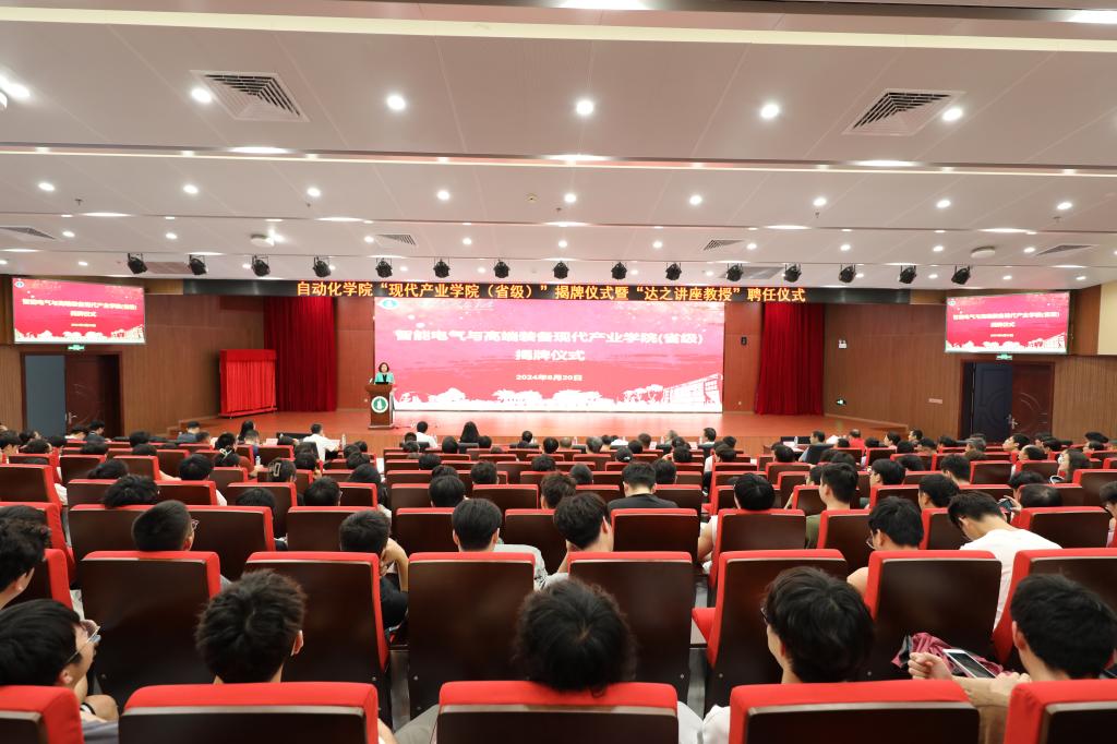 随后,与会领导嘉宾共同为“智能电气与高端装备现代产业学院(省级)”揭牌。
