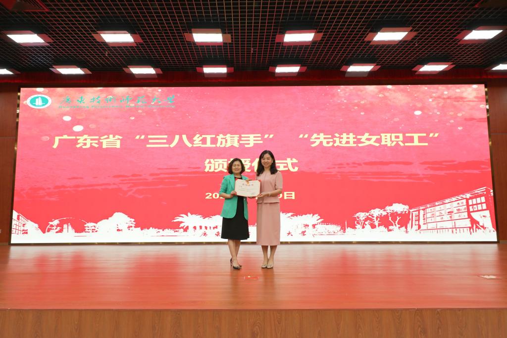 会中,戴青云校长还为岑健颁授了广东省“三八红旗手”“先进女职工”奖项,肯定了她在人才培养、科学研究和服务社会等方面所取得的丰硕成果,以及在学院建设、院企合作和国际交流等方面作出的重要贡献。她勉励师生以岑健院长为榜样,提高服务社会的能力,共同建设好学院和学校。