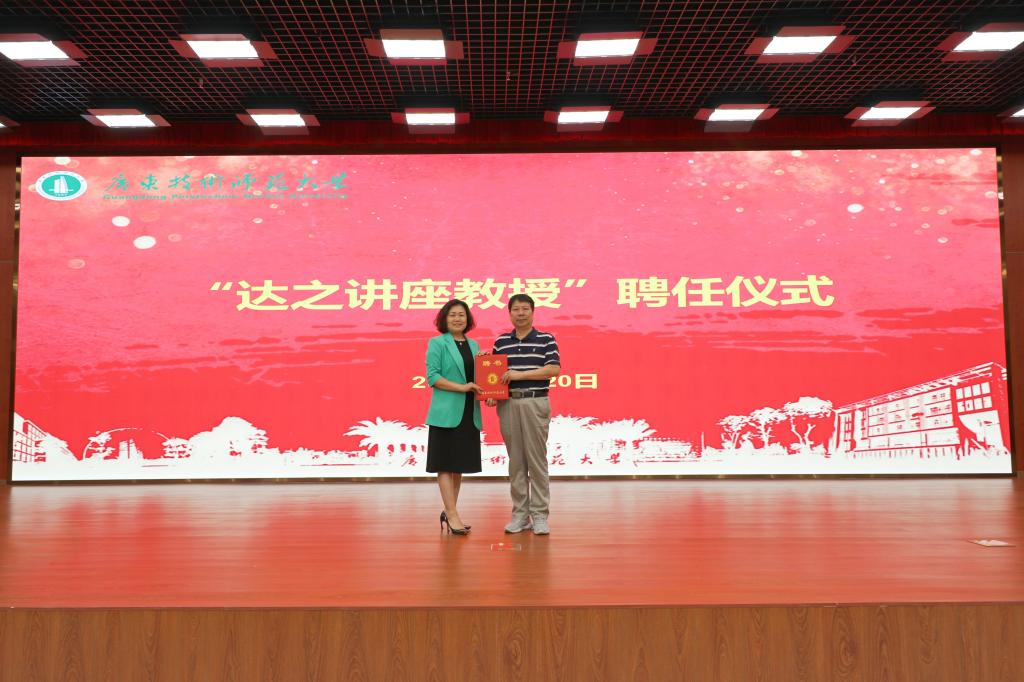 最后,戴青云为华南理工大学邓飞其教授颁发了“达之讲座教授”的聘书。聘请杰出学者担任“达之讲座教授”是自动化学院提升整体科研实力、优化人才培养体系、推动学生发展、促进产学研合作的重要举措。邓飞其作为自动控制领域具有卓越成就和丰富经验的专家学者,此次聘请其作为学院“达之讲座教授”,不但能为学院带来最新的学术思想和产业技术,也将进一步推动学院在前沿科学技术方面进行创新探索和产学研融合,还可以引导研究生与本科学生参与创新科研项目,提升学生的技术能力和创新意识,为学院培养高水平人才、打造一流学科发挥积极作用。