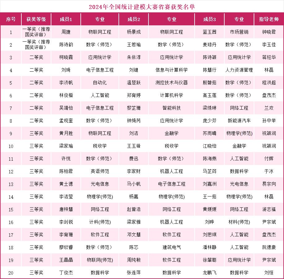 近日,2024年全国统计建模大赛广东省省赛成绩揭晓。买球官网学子拼搏努力,表现优异,夺得省级一等奖2项(同时报送国家级评奖),省级二等奖6项,省级三等奖12项。