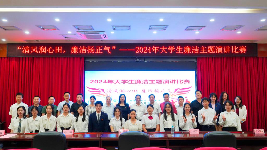 为推动党纪学习教育走深走实,引导广大师生进一步夯实清正廉洁思想根基,不断增强廉洁自律意识,6月20日晚,由学校纪检监察室、团委主办,文学与传媒学院承办的“清风润心田,廉洁扬正气”大学生廉洁主题演讲比赛决赛在白云校区第三教学楼104报告厅举办。学校党委副书记李向明,党委组织部、纪检监察室、团委及各学院相关负责人共300余名师生代表出席了活动。