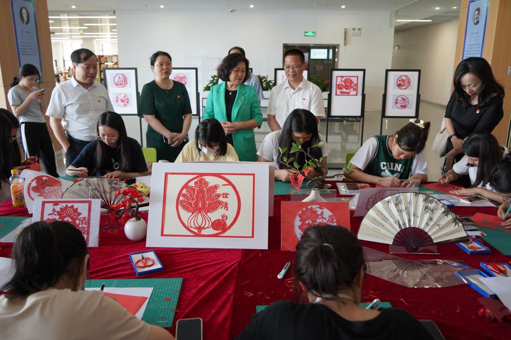 剪一张红纸,守一抹廉洁。书展“把‘廉’带回家”剪纸活动现场热烈,全校师生一起剪“廉”字、刻“莲”花,以巧手挥剪,将清廉精神内涵展示成了看得见、摸得着的剪纸作品。用剪纸警醒师生,“廉”就像剪纸,稍不注意就会剪坏,多剪一毫就会破底线,以警示教育敬畏知止。