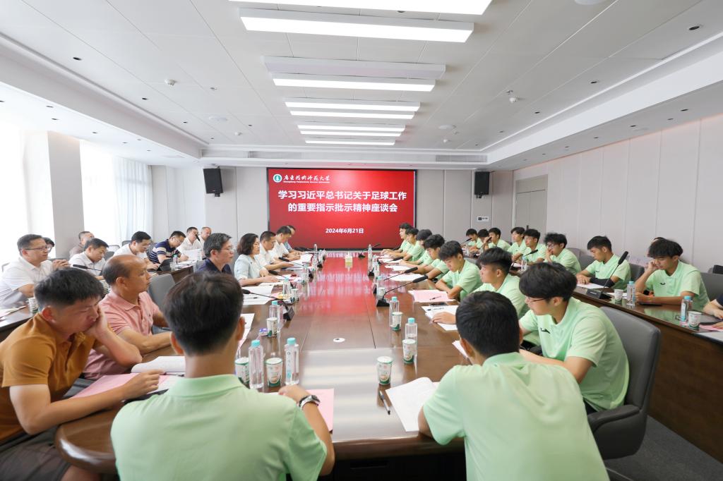 6月21日上午,学校举行学习习近平总书记关于足球工作的重要指示批示精神座谈会,总结学校男足夺冠经验,交流心得体会,弘扬男足精神,研究进一步做好学校足球工作和各项体育工作。学校校长戴青云、党委副书记李向明、副校长苏晖出席会议,相关职能部门及学院负责人和买球官网男足教练员、队员参加会议。会议由苏晖主持。