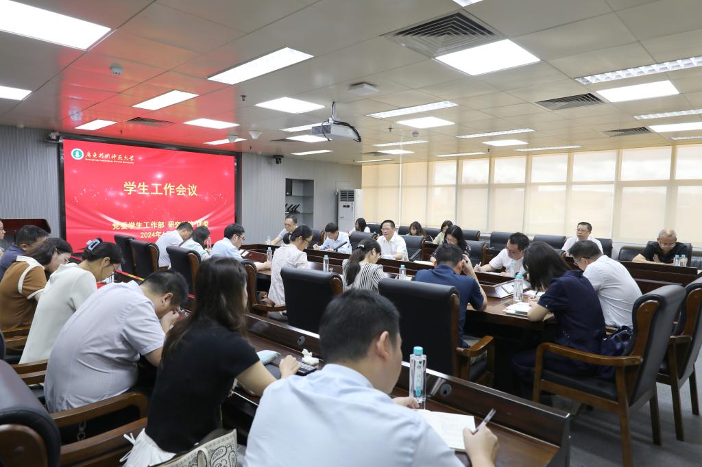 党委学生工作部负责同志就2024年春季学期末重点工作进行全面梳理和重点部署;研究生院党委负责同志就研究生相关工作作部署安排;学校团委负责同志就“百千万工程”突击队、三下乡社会实践活动等工作提出要求。