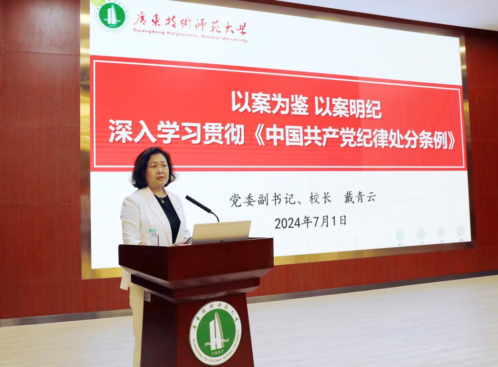 学校党委副书记、校长戴青云作了题为“以案为鉴 以案明纪——深入学习贯彻《中国共产党纪律处分条例》”的警示教育辅导报告,结合有关典型案例深入剖析校内外党员领导干部违纪违法行为的表现及危害。
