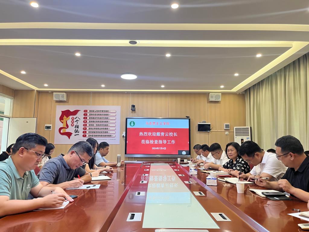 7月4日下午,学校校长戴青云到马克思主义学院调研指导智慧思政课程教育中心建设、学科建设、思政课教学等工作。校长办公室负责人,马克思主义学院党政班子成员、全体教师等参加了调研活动。