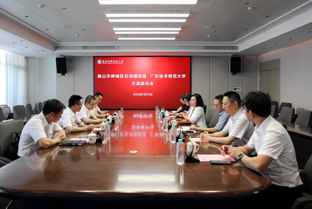 7月10日,佛山市禅城区石湾街道党工委书记陈树凯一行四人来校调研交流。学校校长戴青云出席交流活动,校长办公室、党委组织部、美术学院相关负责人和学校石湾街道挂职干部参加调研。