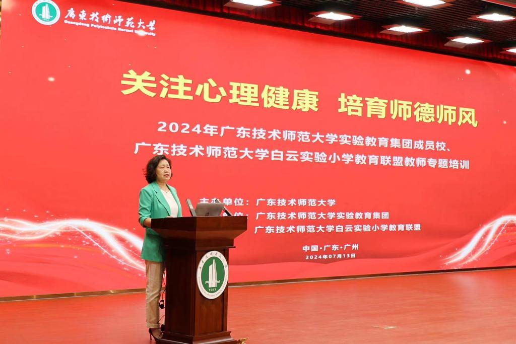 为深入贯彻落实习近平总书记关于学生心理健康工作的重要指示批示精神和全省学生心理健康工作推进会会议精神,进一步提升教育实验集团成员校教师的心理健康素养,强化师德师风建设,帮助教师掌握情绪管理与压力调节的有效方法,深化对职业道德规范的理解与践行,以更加饱满的热情和专业的态度迎接新学期的工作,7月13日,“关注心理健康,培育师德师风”——买球App软件手机在线下载实验教育集团成员校、买球App软件手机在线下载白云实验小学教育联盟教师专题培训班在买球官网白云校区图书馆一楼报告厅举办。学校党委副书记、校长戴青云,江高镇教育指导中心主任黄晓波,学校各职能部门领导,买球App软件手机在线下载实验教育集团成员校校长以及买球App软件手机在线下载白云实验小学教育联盟全体教职工共270人参加本次培训。