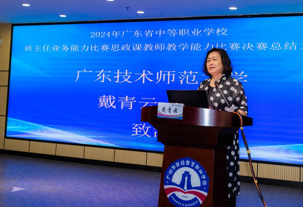 8月9日,2024年广东省中等职业学校班主任业务能力比赛和思政课教师教学能力比赛决赛总结颁奖会在广州市财经商贸职业学校顺利举行。学校党委副书记、校长戴青云,广东省教育厅思想政治工作与宣传处处长倪熙博士,广东省中职德育研究与指导中心主任汪永智教授、广东省中职德育研究与指导中心队伍培训部主任刘春雁副教授、广东省中职德育研究与指导中心思政课竞赛部主任金素端副教授、广州市教育局宣传与思想政治教育处处长刘琦宝、广州市白云行知职业技术学校副校长梁慧勤、广州市财经商贸职业学校校长彭文斌、党委副书记陈文晖等领导出席总结颁奖会。