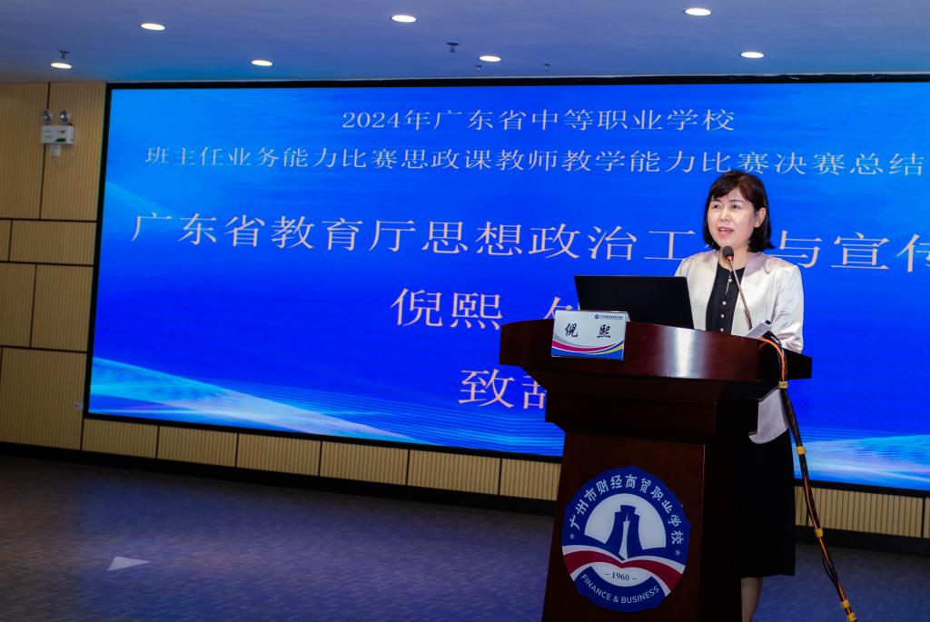 倪熙对广东省中职德育研究与指导中心引领我省中职德育队伍和思政课教师队伍发展所取得的成绩表示充分的肯定,对本次赛程组织给予了高度评价,希望选手们继续打磨作品、奋勇争先,保持初心、服务学生成长成才,为广东增光添彩。