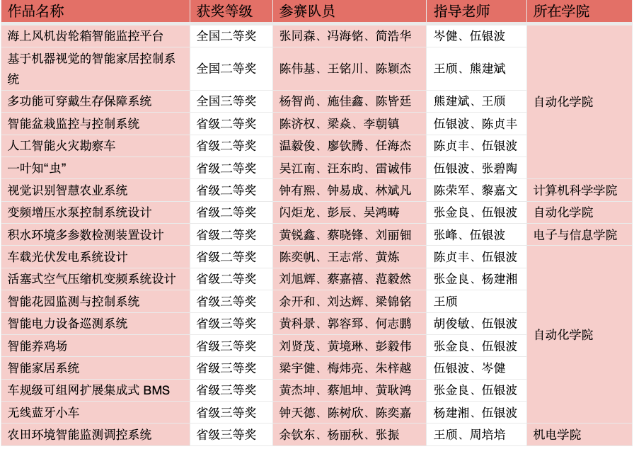 近日,第七届全国大学生嵌入式芯片与系统设计大赛全国总决赛在南京落幕。买球官网学子历经分赛区初赛、复赛及全国总决赛三个阶段的奋战,共获得全国二等奖2项、三等奖1项,南部赛区一等奖3项、二等奖8项、三等奖7项的好成绩。