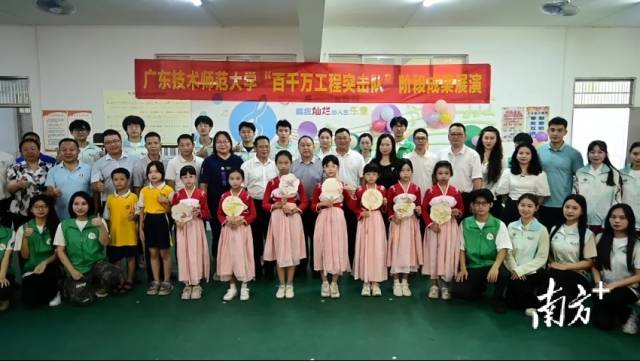 团队还与中山大学、广东外语外贸大学携手举办文艺汇演晚会,学生们将在乡村一线实践期间的所思所感所获,通过艺术形式展现出来,获得当地群众广泛好评。