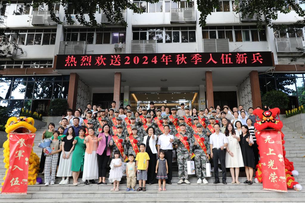志存高远砺青春,建功立业赴军营。9月1日下午,学校在东校区一教208报告厅举行2024年秋季大学生应征入伍欢送会。学校党委副书记、校长戴青云,党委副书记李向明出席仪式;党委学生工作部、武装部主要负责同志,各学院负责学生工作的党委书记或副书记、辅导员、部分预定新兵代表、家属代表、其他学生代表等参加了活动。