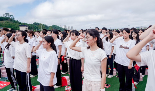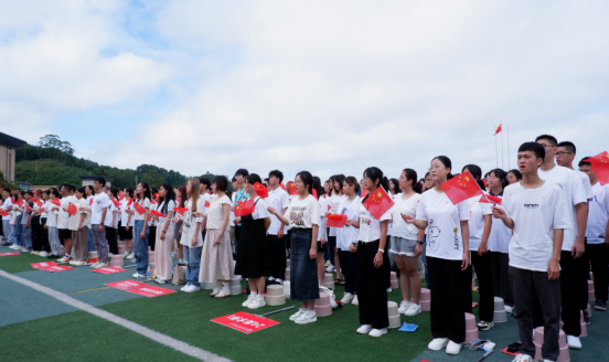 “我将秉承校训精神,厚德博学,唯实求新;坚定理想信念,厚植家国情怀!为实现中国式现代化砥砺品格,挺膺担当!”全体2024级新生为即将开篇的大学生活庄严宣誓。