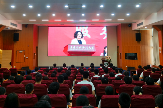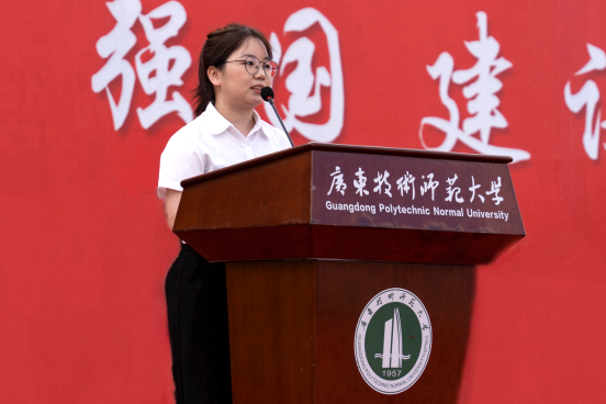 师生代表集体吟诵《从今天起,坚定地做一个“广师大人”》诗词,表达了广师大师生将心怀家国,不忘初心,传承校训品格,踔厉奋发、笃力前行。