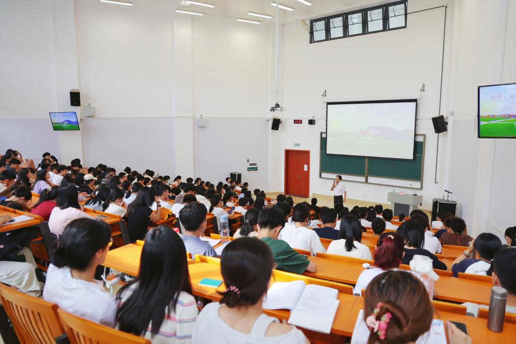 罗海鸥指出,大学与中学的不同,在于其使人站起来瞭望,看到新的更大的世界。他结合开展新生入学教育、创新创业大赛、政工干部的培养与发展、大学校园文化建设等实际案例和自身经历,从认识世界,增长见识;明确方向,制定目标;自强不息,匠心铸魂等三个方面,融合了大量古今中外知名教育家和学者的成长经历和工作成就,全面深刻阐述了新时代大学生可以从“现实世界”“文本世界”和“虚拟世界”等三个世界学习,充分利用三个世界丰富的物质和精神文化资源,充实人生,提升自己,追求卓越。他鼓励同学们从责任、能力与创新等三个核心要素着手,不断拓宽自己的视野和认知,做高素质、专业化人才;同时要注意加强体育锻炼,提高身体素质,立志成为负责任、强能力、能创新的德智体美劳全面发展的社会主义建设者和接班人。