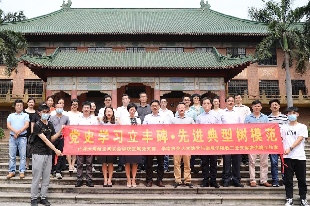 为庆祝中国共产党成立100周年,深入贯彻习近平总书记在党史学习教育动员大会上提出的“学史明理、学史增信、学史崇德、学史力行”的要求,创新党史学习教育方式方法,4月22日下午,网络空间安全学院直属党支部14名教工党员前往华南农业大学与数学与信息学院软件学院信息与计算科学教工党支部联合开展“党史学习立丰碑•先进典型树模范”主题党日活动。华南农业大学党委组织部副部长鲍金勇、数学与信息学院党委副书记方育阗、副院长夏强及支部10余名党员参加了此次活动。