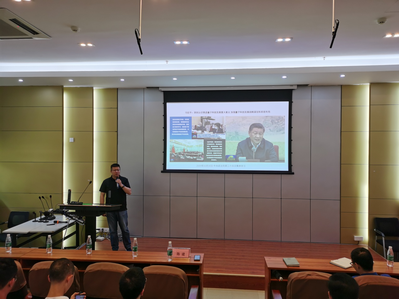 陈建介绍了我国目前量子技术产业化的进展。陈建指出,量子技术受到了党和国家领导人的高度重视,在我国半导体技术受到美国“掐脖子”的大背景下,量子技术是我国实现对美国科技实力弯道超车的好机会。陈建详细地阐述了量子技术产业化的分类,分析了国内外的当前发展状况。陈建的报告深入浅出,学理性和趣味性相统一,引起与会师生强烈反响。