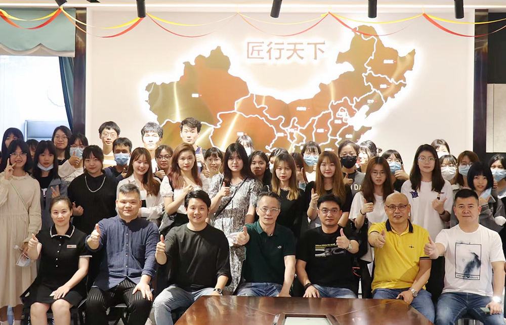为进一步促进校企合作深度融合,4月28日,美术学院副院长吴健平组织2020级环境设计专业学生一行50余人到名匠装饰(集团)总部参观交流。名匠装饰(集团)总裁李俊、材料配送中心经理张祖木先生、广州公司经理王元早、广州公司设计总监甘绿良和整装体验馆经理肖娟热情接待,并详细介绍公司情况。