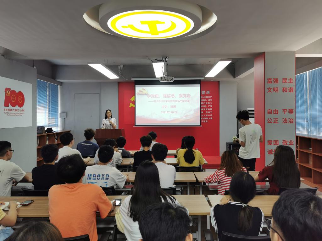 5月6日,电子与信息学院在东校区初心斋举行了“学党史、励初心、谋发展”活动第十讲暨“忆峥嵘岁月、扬时代风采”党史主题观影活动,电子与信息学院党委副书记梁茵讲授专题党课,学院党员和发展对象共70余人参加此次活动。