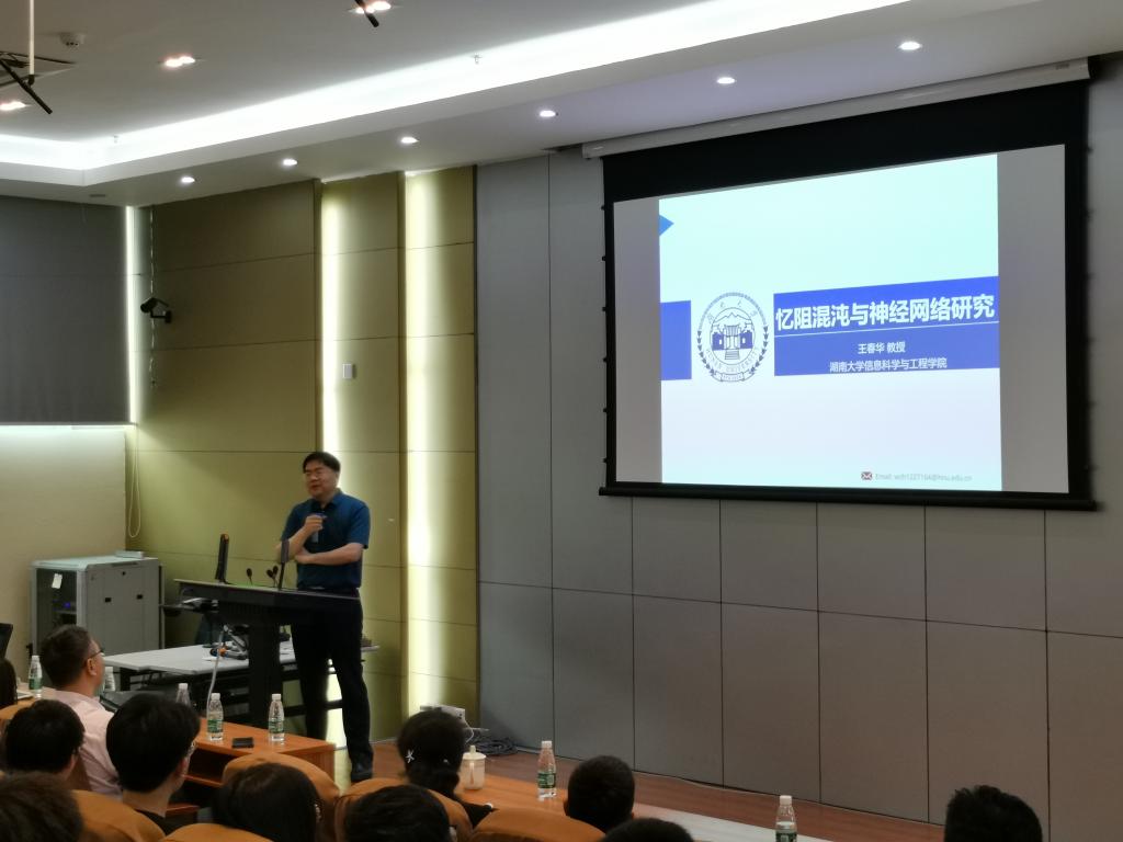 5月8日,电子与信息学院在一教209报告厅举行学术报告会,湖南大学信息科学与工程学院教授、博士研究生导师、先进通信技术湖南省高校重点实验室主任王春华教授受邀作了题为“忆阻器混沌与神经网络研究”的学术报告。电子与信息学院班子成员、青年博士教师、全体研究生和部分本科生参加了此次学术报告,报告会由电子与信息学院副院长李亚主持。
