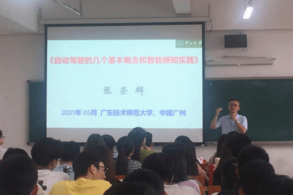 5月17日,中山大学智能工程学院副教授、博士生导师张荣辉应邀在白云校区三教301教室为汽车与交通工程学院“同心班”博学讲堂作了题为《自动驾驶的几个基本概念和智能感知实践》的学术报告,汽车与交通工程学院师生近200人聆听了讲座。