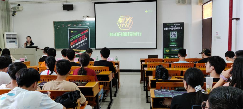 5月20日,网络空间安全学院邀请“360漏洞云”漏洞响应平台在白云校区二教702室开展“360白帽校园行星火计划”宣讲。360政企安全集团华南区域教育市场总监李伟光及其团队、学院政工干部及全体学生共计100余人参加。