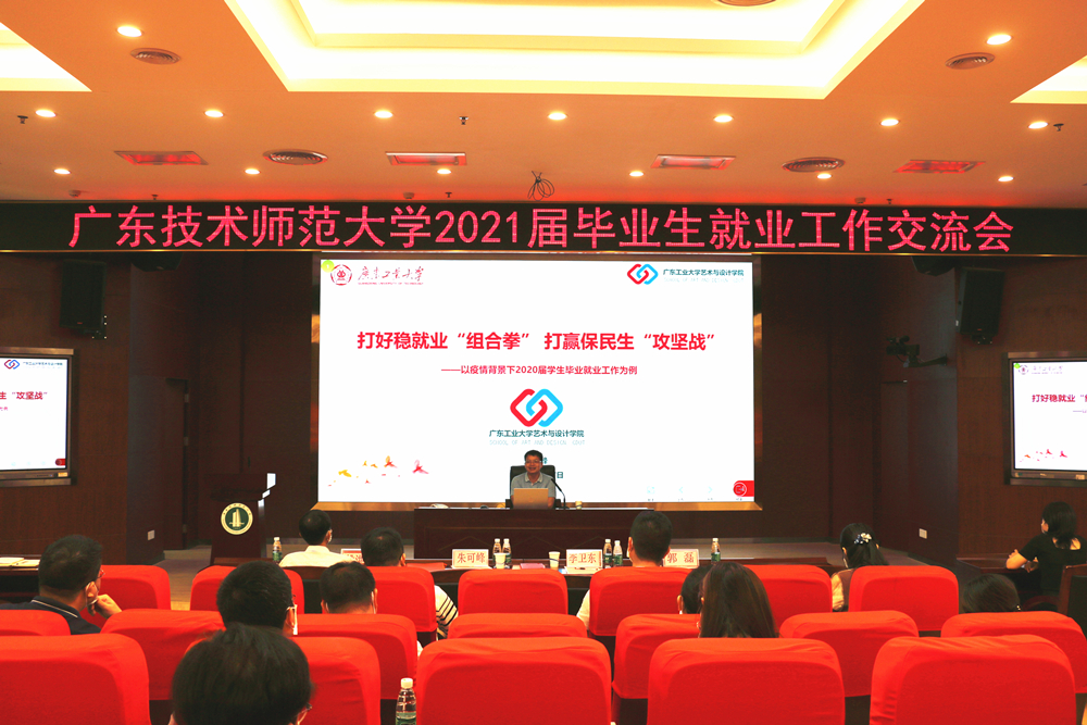 朱可峰则以《打好稳就业‘组合拳’打赢保民生‘攻坚战’》为题,以广工艺术与设计学院大幅提升就业率水平为例,分享了五个“一对一”和针对重点群体分类施策等各项就业措施和心得体会。