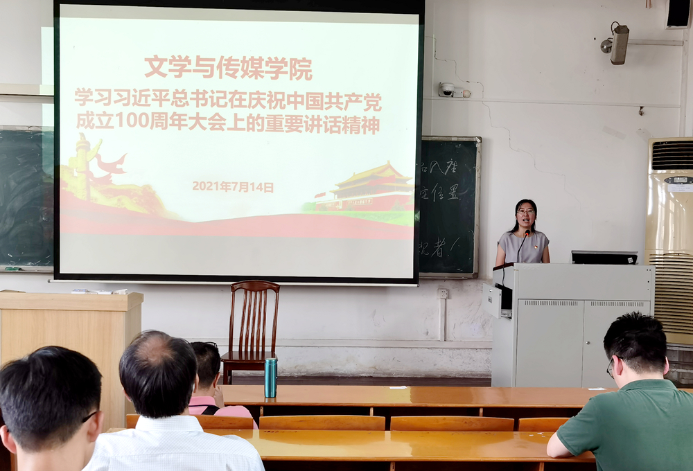 百年正道沧桑,百年奋斗永恒。为深入学习习近平总书记在庆祝中国共产党成立100周年大会上的重要讲话精神,全面系统把握党中央在新的历史起点上推进党和国家事业发展的新部署新要求,7月14日,文学与传媒学院在东校区二教204召开学习贯彻习近平总书记在庆祝中国共产党成立100周年大会上重要讲话精神动员会暨学习分享会。学院党政领导班子成员、学院全体教师参加会议。会议由学院党委书记李双贵主持。