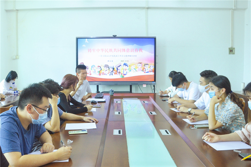 为贯彻落实学校党委《关于做好2021年春季学期党委书记、校长和各学院党组织书记、院长上第一堂思想政治理论课工作的通知》要求,深入学习贯彻第五次中央民族工作会议精神,扎实做好疫情期间学生思想政治教育工作,9月4日,民族学院党总支书记黄文浩为民族学院学生党支部党员、研究生会干部及2021级全体新生讲授秋季学期思政第一课。