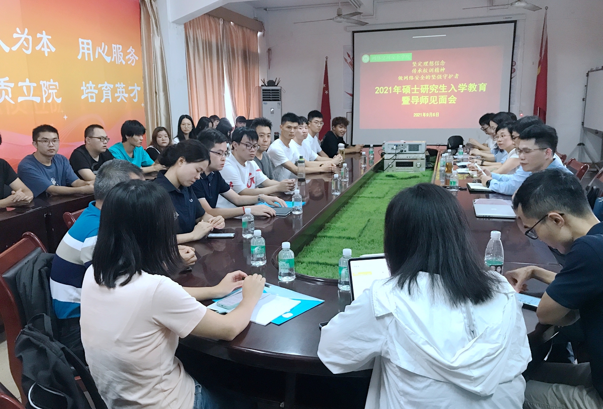 为帮助2021级研究生新生尽快转换角色,适应校园生活,建设良好的校风和学风,9月6日,网络空间安全学院在西校区综合楼会议室举行了以“坚定理想信念,传承校训精神,做网络安全的坚强守护者”为主题的入学教育暨导师见面会活动。学院领导班子、全体硕士生导师、2021级研究生和2020级老生代表参加了此次活动。