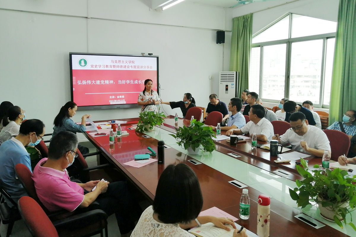 此次学习会是马克思主义学院进一步推进党史学习教育和丰富师德主题教育月活动的重要举措。房亚兵强调,师德师风是评价教师的第一标准,要求全体思政课教师提高政治站位,在党史学习教育中加强自身修养,当好新时代的“四有”好老师。老师们纷纷发言,表示一定严守师德师风底线,履职尽责潜心育人,努力做师德表率。