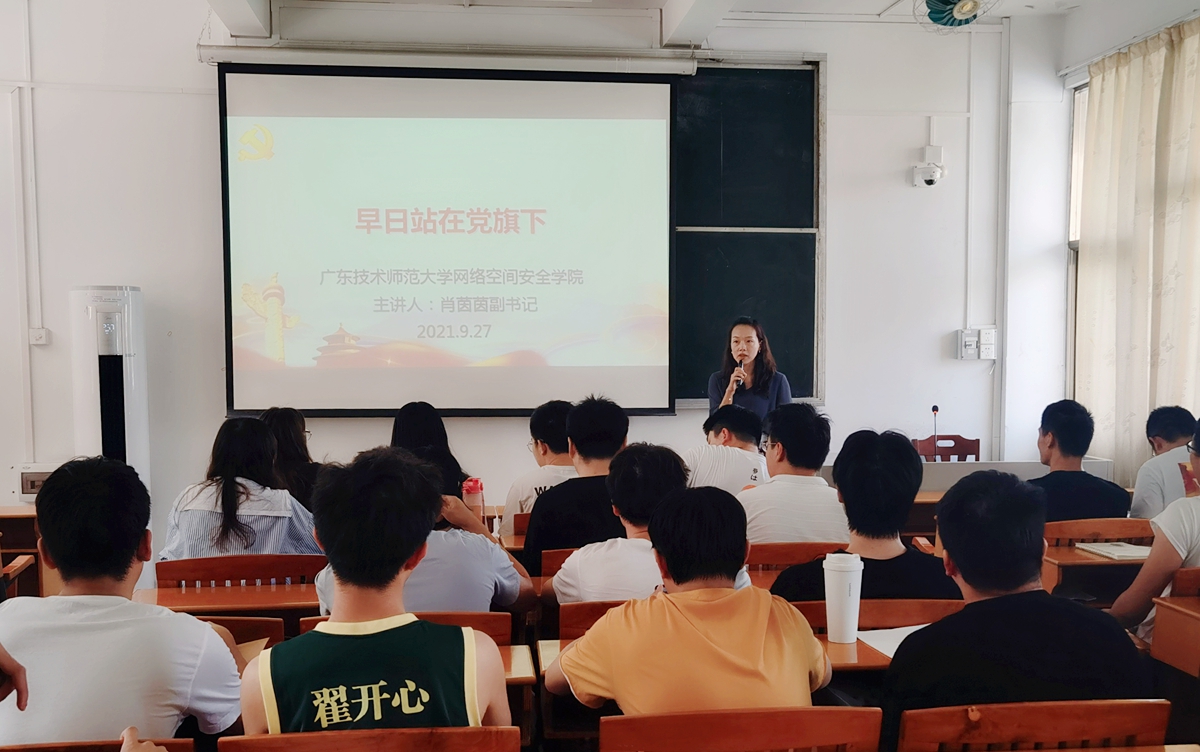 为推进党史学习教育,增强新生对中国共产党的认识,端正入党动机,积极向党组织靠拢,9月24日和9月27日,网络空间安全学院分别面向2021级本科生和研究生在河源校区博学大讲堂104和西校区教学楼404开展了学习“七一”重要讲话精神暨入党启蒙教育活动。学院直属党支部副书记肖茵茵、学院辅导员及全体新生参加了此次活动。