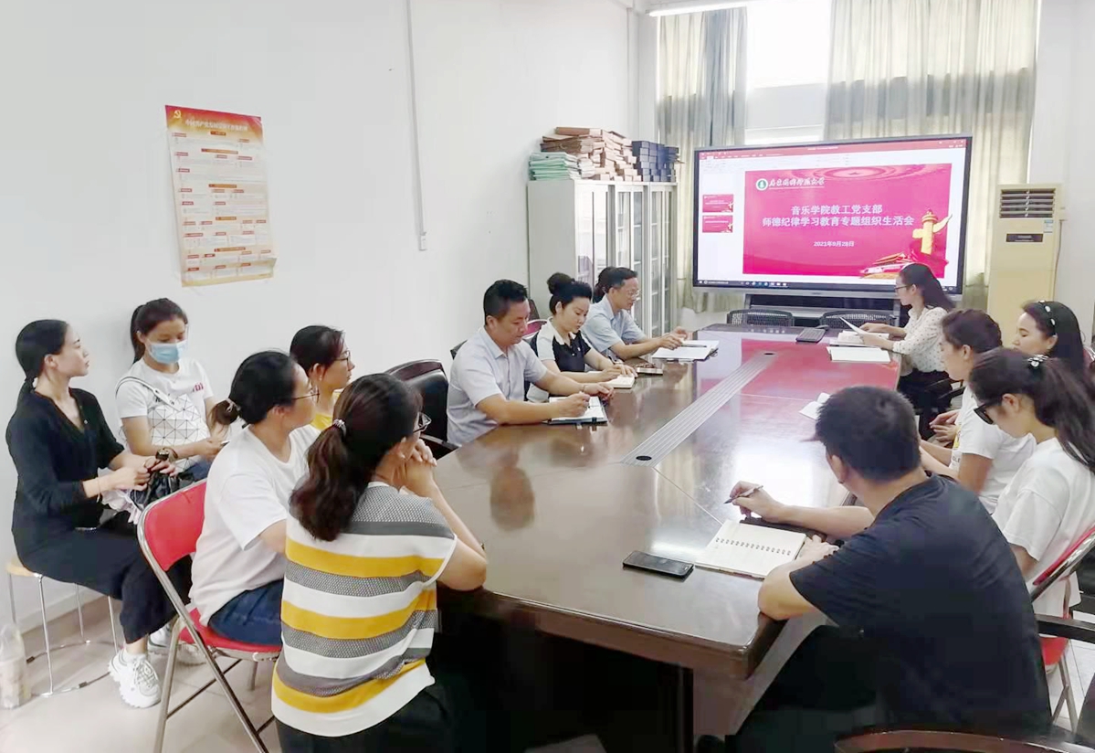 为深入推进党史学习教育,加强师德师风建设,9月28日,音乐学院教工党支部召开师德师风专题学习会,音乐学院教师党员参加了专题学习会。