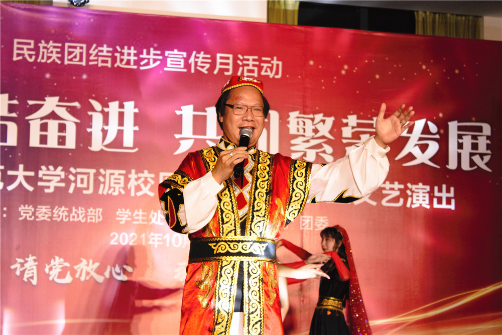 为深入学习贯彻落实习近平总书记在中央民族工作会议上的重要讲话精神,紧紧围绕各民族“共同团结奋斗、共同繁荣发展”的民族工作主题和“铸牢中华民族共同体意识”这一新时代民族工作主线,突出学校民族工作建设的优势。10月15日,由党委统战部、学生处、河源校区管委会、团委共同主办的以“共同团结奋斗、共同繁荣发展”为主题的少数民族师生文艺演出在河源校区圆满落幕。相关部门主要负责人、部分二级学院副书记及广大师生参加了晚会。